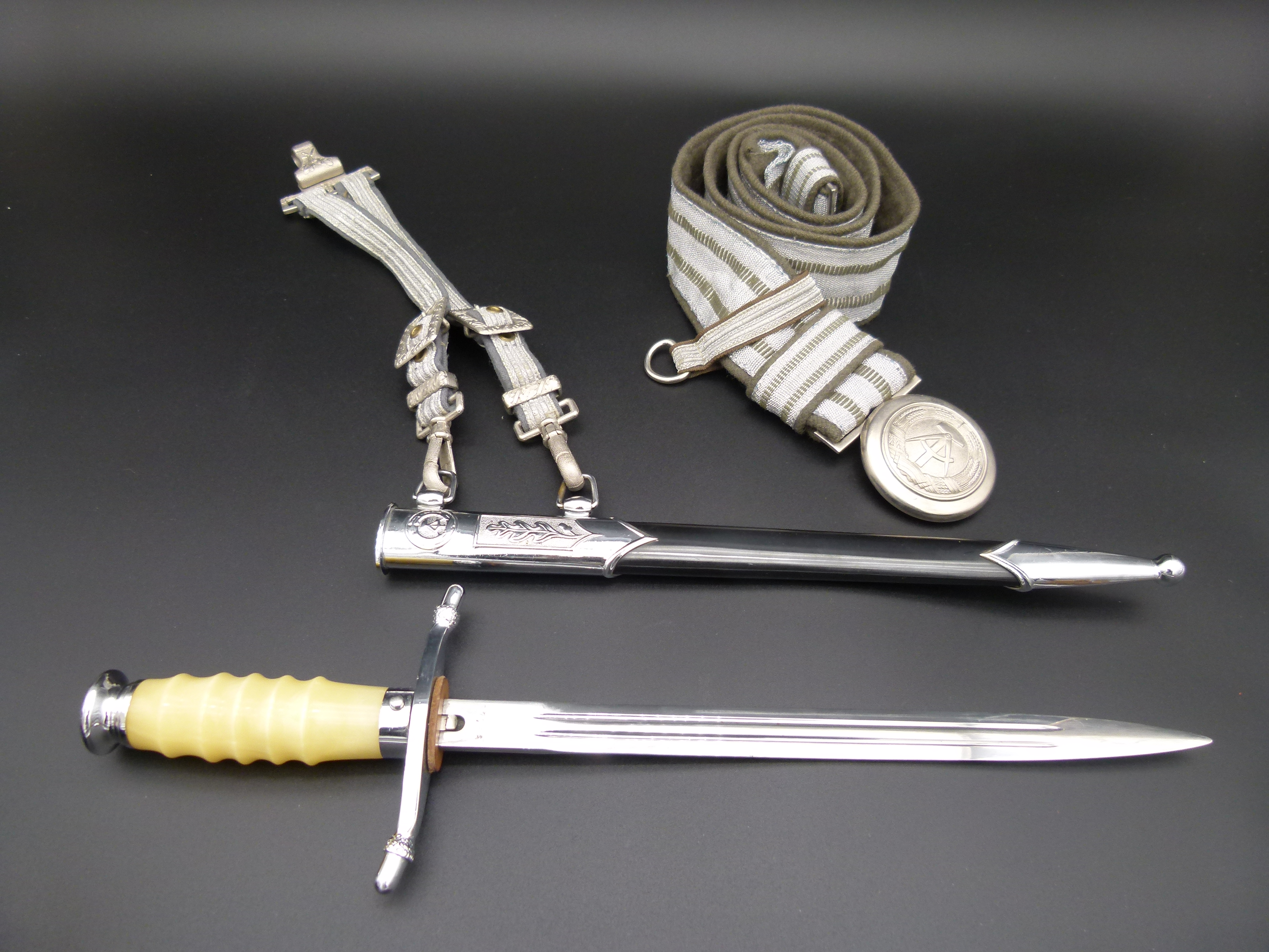 -früher NVA Offiziersdolch mit Feldbind und 3 Loch Gehänge