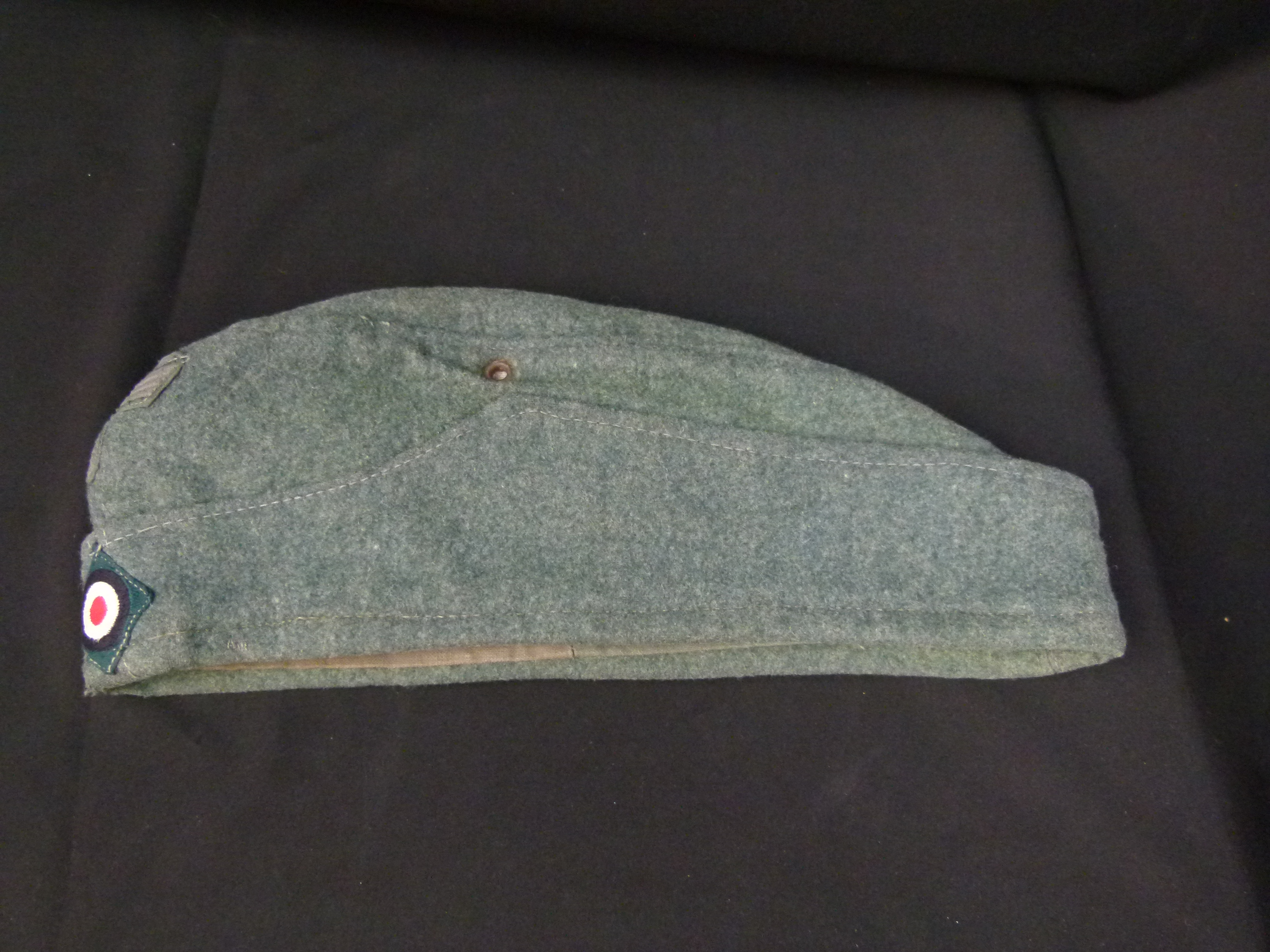 Sie haben hier die Möglichkeit ein sehr schönes getragenes Schiffchen für Mannschaften des Heeres der Deutschen Wehrmacht aus dem 2. Weltkrieg zu ersteigern. Das Schiffchen in guten getragenen Zustand mit Heeresadler und Kokarde, seitliche Lüftungsnieten sowie Hersteller und Größe 56 im inneren gestempelt. Den Hersteller kann ich leider nicht entziffern. Vorn mittig an der schmalen unteren Kanten etwas aufgerieben. Ein traumhaftes original Stück Geschichte und ein Muss für Sammler deutscher Kopfbedeckungen.